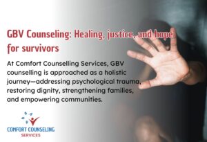 At Comfort Counselling Services, GBV counselling is approached as a holistic journey—addressing psychological trauma, restoring dignity, strengthening families, and empowering ...